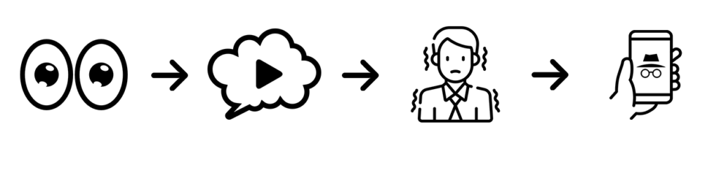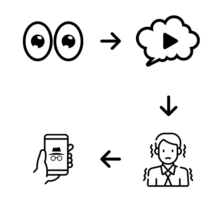 Por exemplo, em pessoas afetadas pelo vício em pornografia: É comum que certas situações ou estímulos desencadeiem pensamentos automáticos relacionados à busca por pornografia, gerando emoções como ansiedade, excitação ou culpa. Esses pensamentos e emoções podem, por sua vez, motivar comportamentos compulsivos de busca e consumo de pornografia. O ciclo continua quando o ato de assistir pornografia reforça os pensamentos disfuncionais e intensifica as emoções associadas, perpetuando assim o ciclo vicioso do vício.